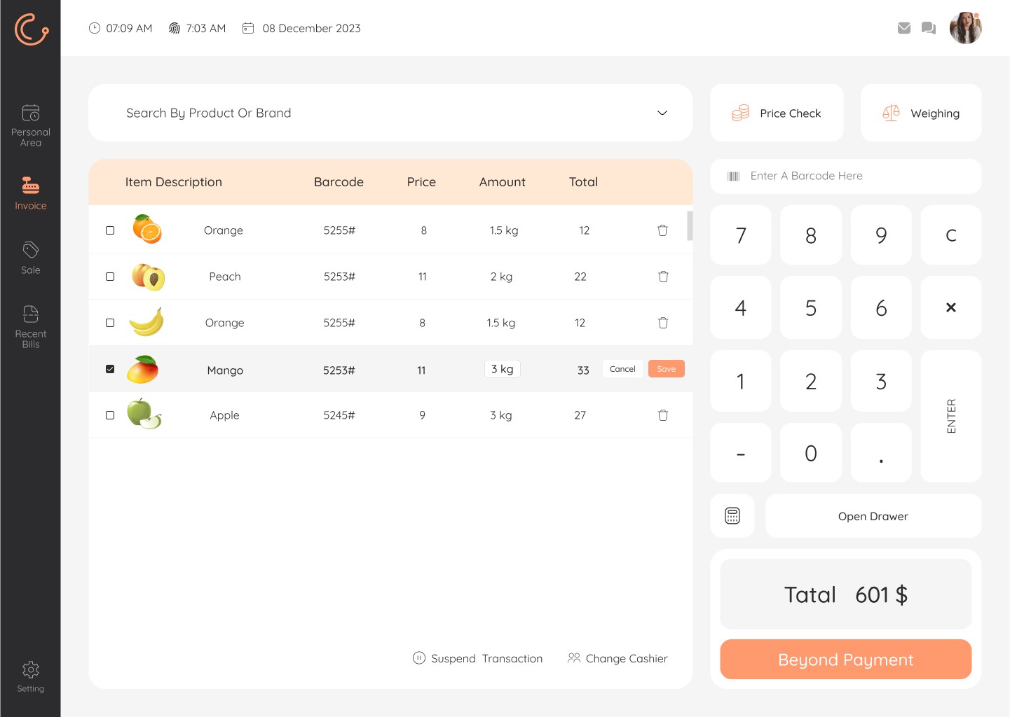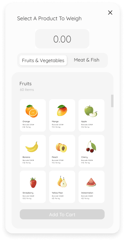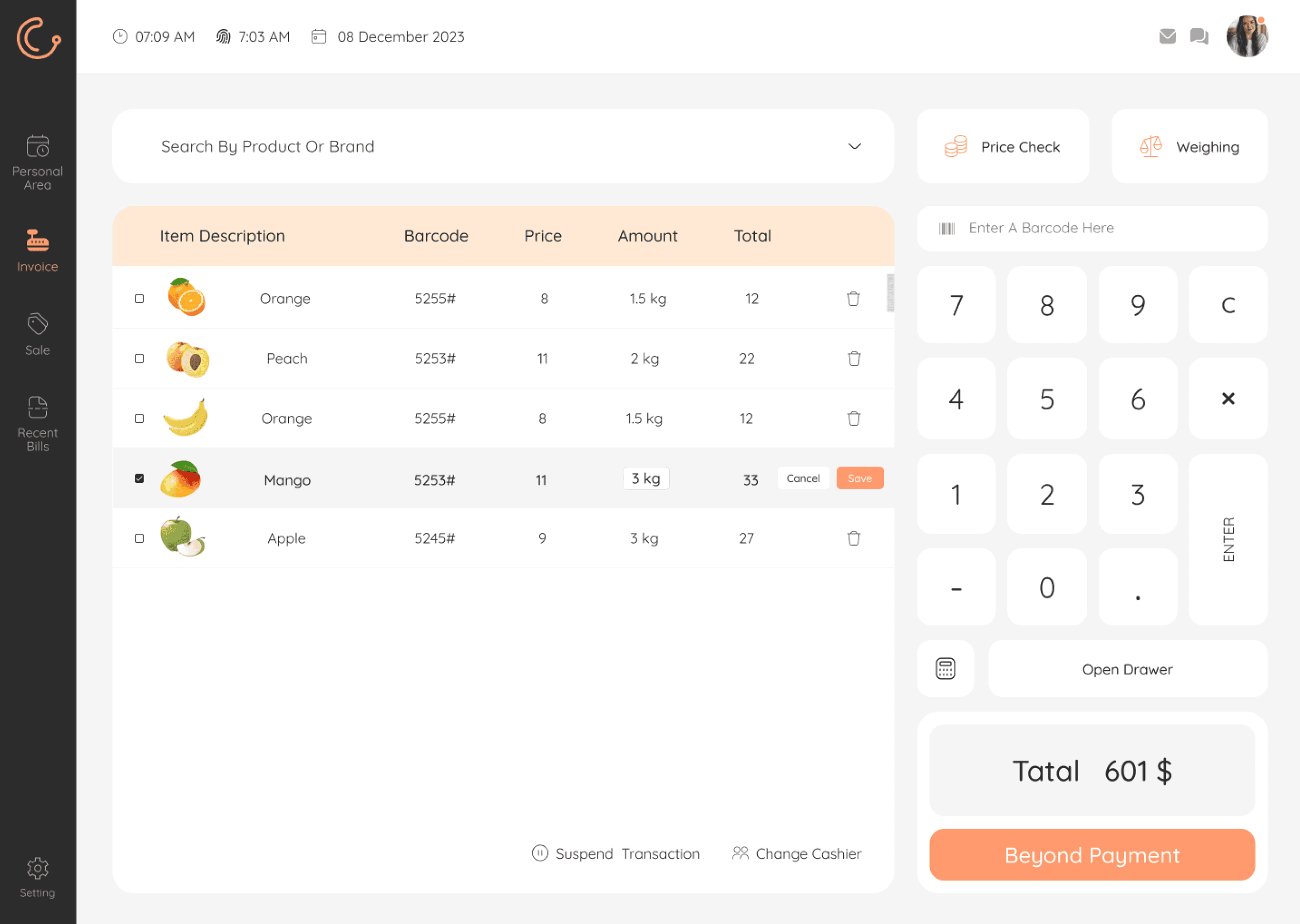The weighing operation appears in the same panel of selecting items intended for weighing