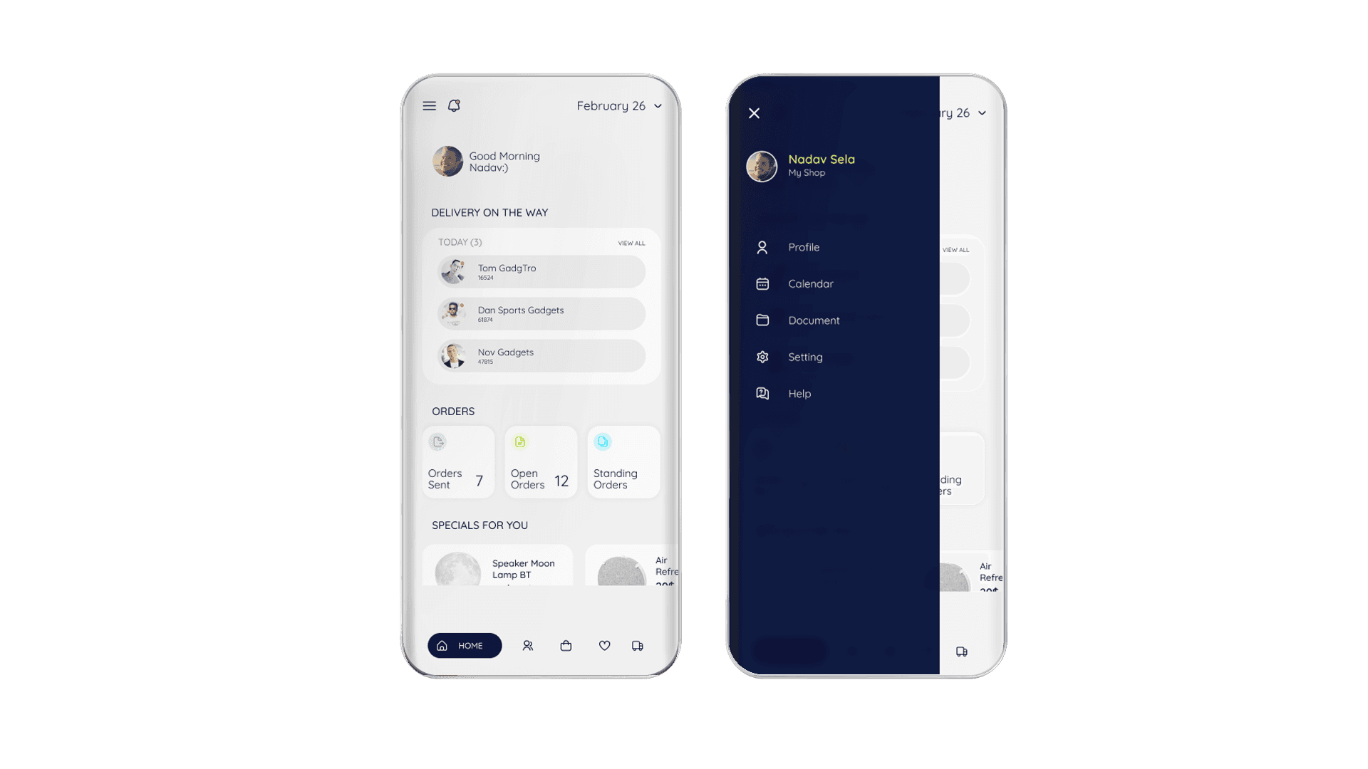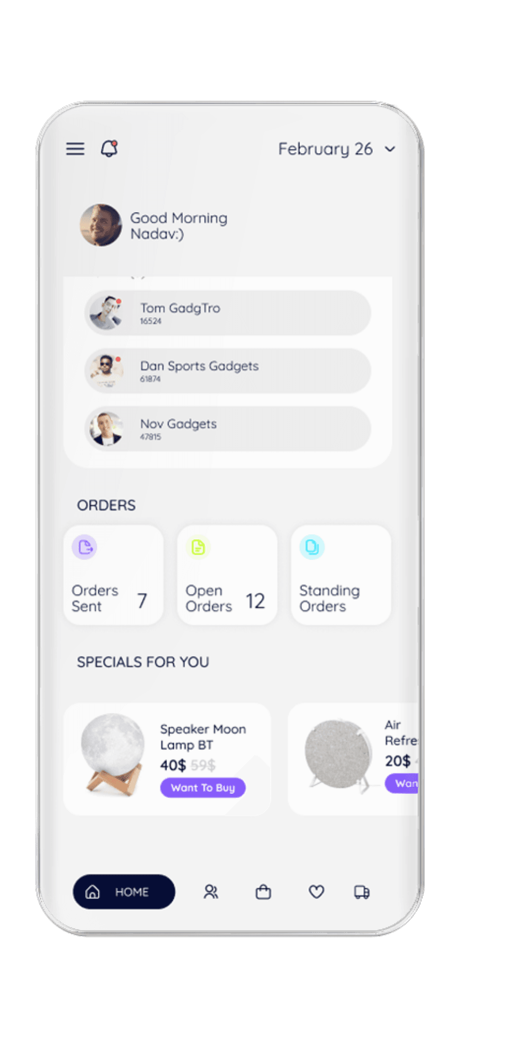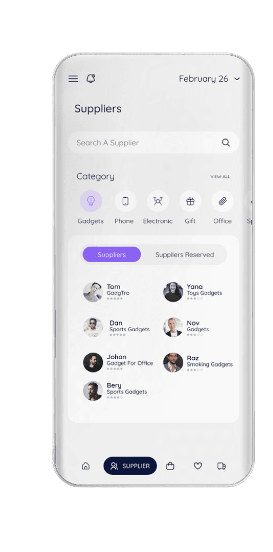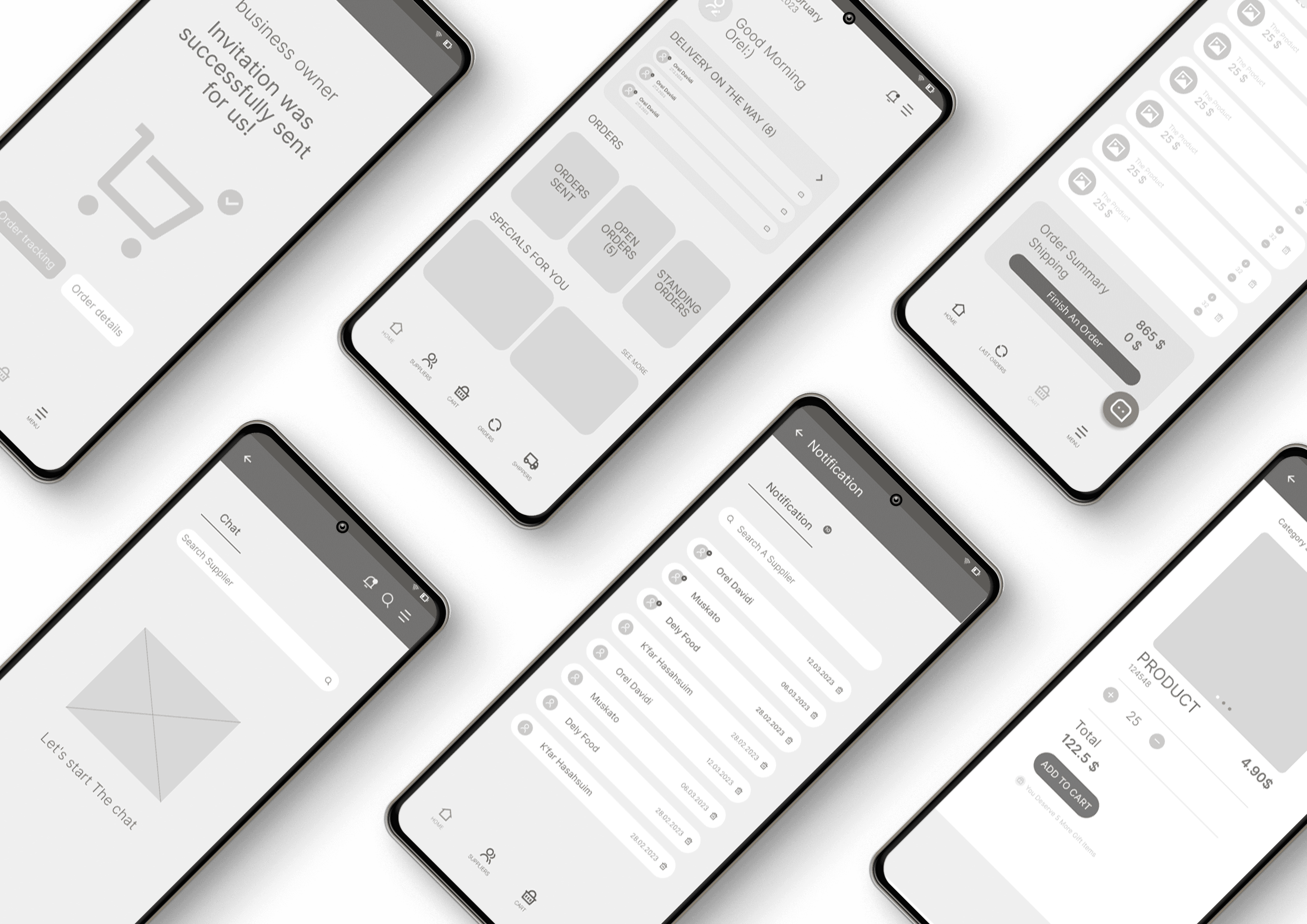 The app offers the business owner to place an order with various suppliers, manage tracking and modifications, in a convenient, clear way with full control of every order.