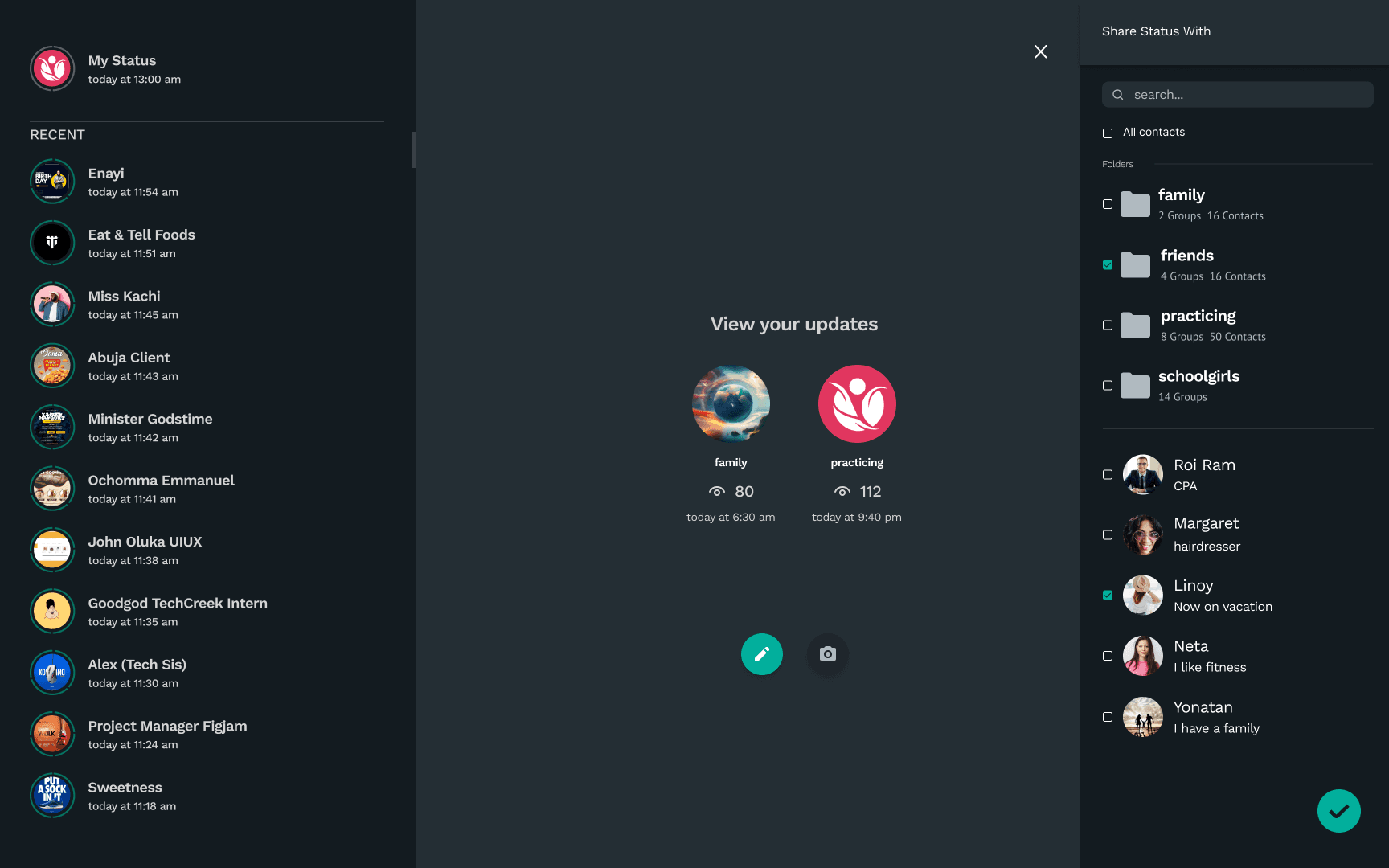 In the status sharing area we can choose which folders we want to share the status with, where each folder will have a different sharing area.